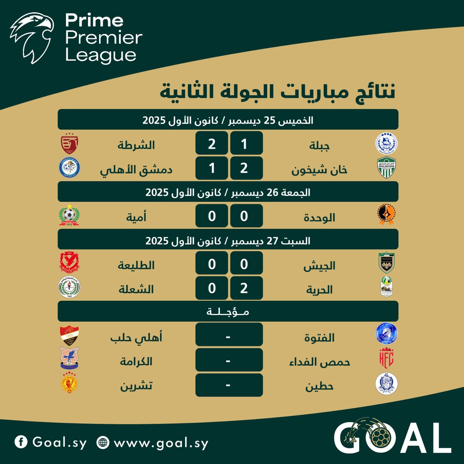 إثارة وندية في الجولة الثانية من دوري "برايم": انتصارات ثمينة للشرطة وخان شيخون والتعادل السلبي يسيطر على لقاءات دمشق